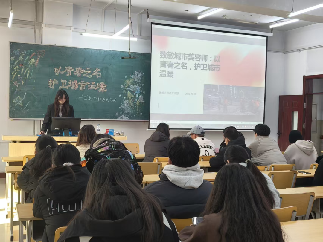 当城市尚在沉睡,他们已肩扛扫帚穿梭街巷;当街头烟火渐浓,他们依旧默默清扫,守护洁净。10月26日全国环卫工人节来临之际,经济管理学院团委志愿者工作部特别开展讲座活动,以真挚话语传递敬意,用赤诚之心读懂“城市美容师”背后的坚守与担当。